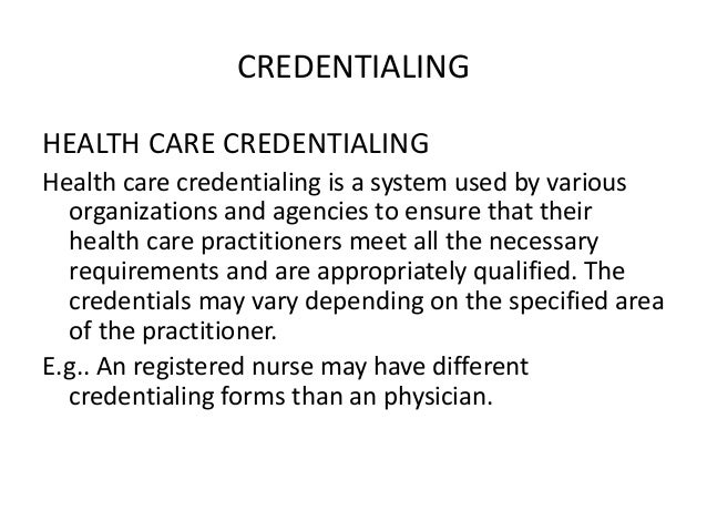 Credentialing and Privileging of Licensed Independent Practitioners organization, such as from the local county or regional medical society, or a practitioner in the community or on the medical staff of a hospital or other health care organization. ... Read Here