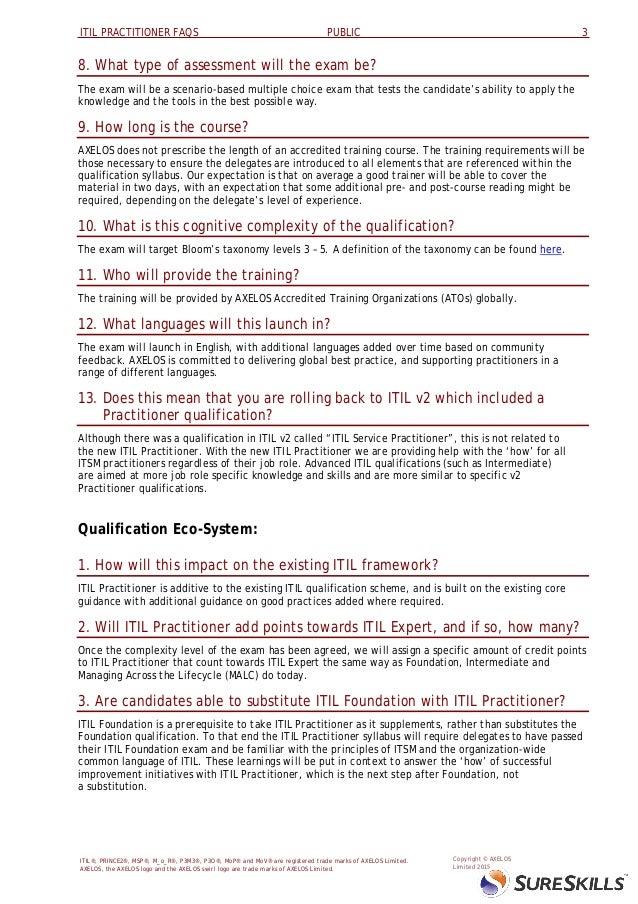 What is ? • A brand new qualification from AXELOS, The exam will also be an open book test. Q: I already consider myself a practitioner, do I need There is an ITIL Practitioner publication which can be used as a ... Content Retrieval